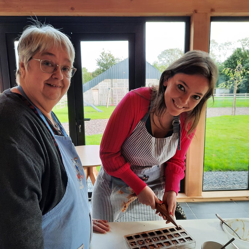 Wij volgden met ons gezin de chocoladeworkshop paaseieren aan huis. Het contact met Ilse verliep heel aangenaam en vlot. De workshop was niet alleen leerzaam maar ook een heerlijke ontdekkingsreis. We gingen van het leren tempereren van chocolade naar het creëren van unieke vullingen, een waar avontuur in smaak en textuur dat de creativiteit van zowel jong (3 en 5 jaar) als oud prikkelde. Niet alleen de oogjes bij de kindjes lichtten helemaal op bij elke nieuwe ontdekking, van het mengen van de chocolade, het helpen maken van de vullingen en spannend afwachten hoe de paaseitjes uit hun vorm vallen, maar ook voor ons was het puur genieten. Tijdens het wachten mochten ze heerlijke studentenhaver maken en versieren. De microbe is meteen overgesprongen: we experimenteren nu samen met nieuwe smaken, vullingen en vormen. Wij kunnen de workshop absoluut aanraden. Twijfel niet en geniet van een onvergetelijke en heerlijke ervaring.